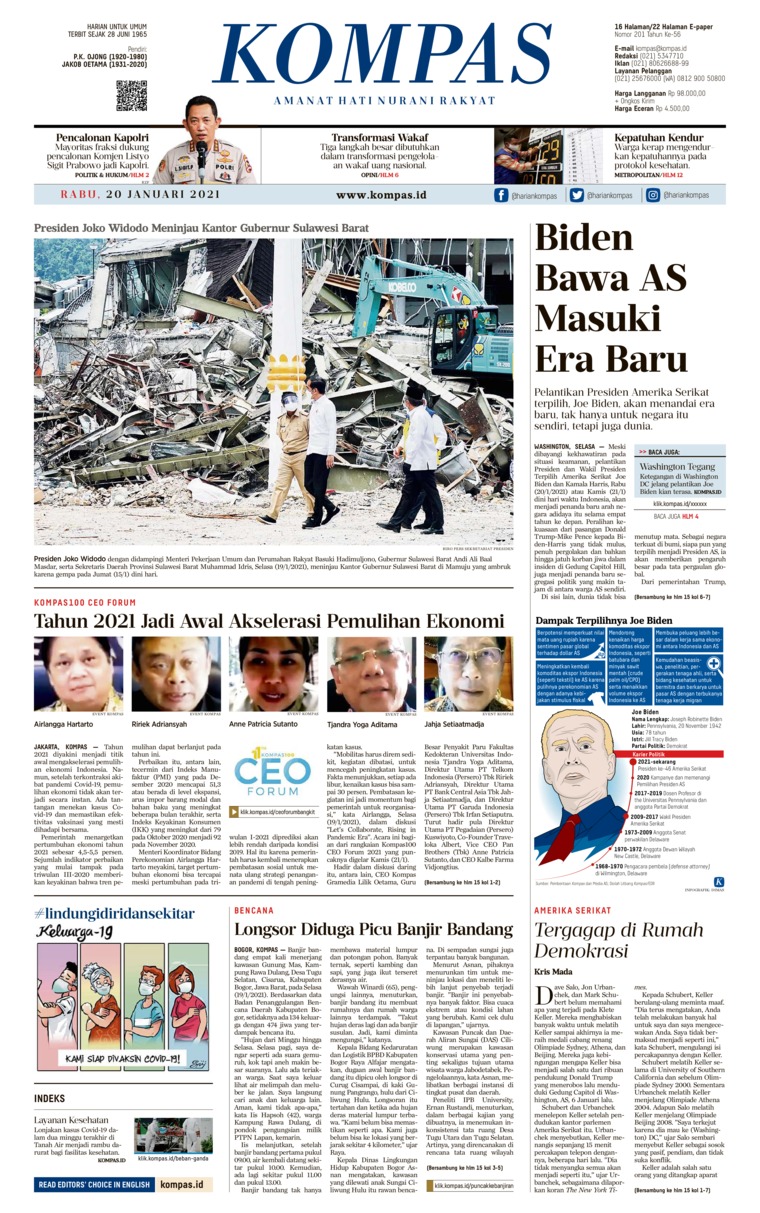 Jual Koran Kompas 20 Januari 2021 Gramedia Digital Indonesia