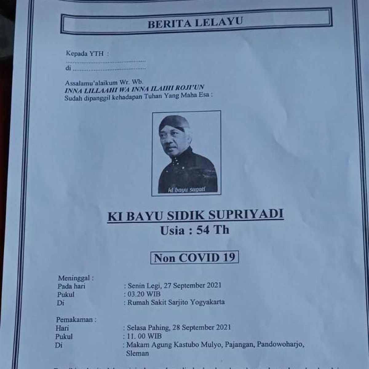 Dalang Kenamaan Yogyakarta Ki Bayu Sugati Meninggal Dunia